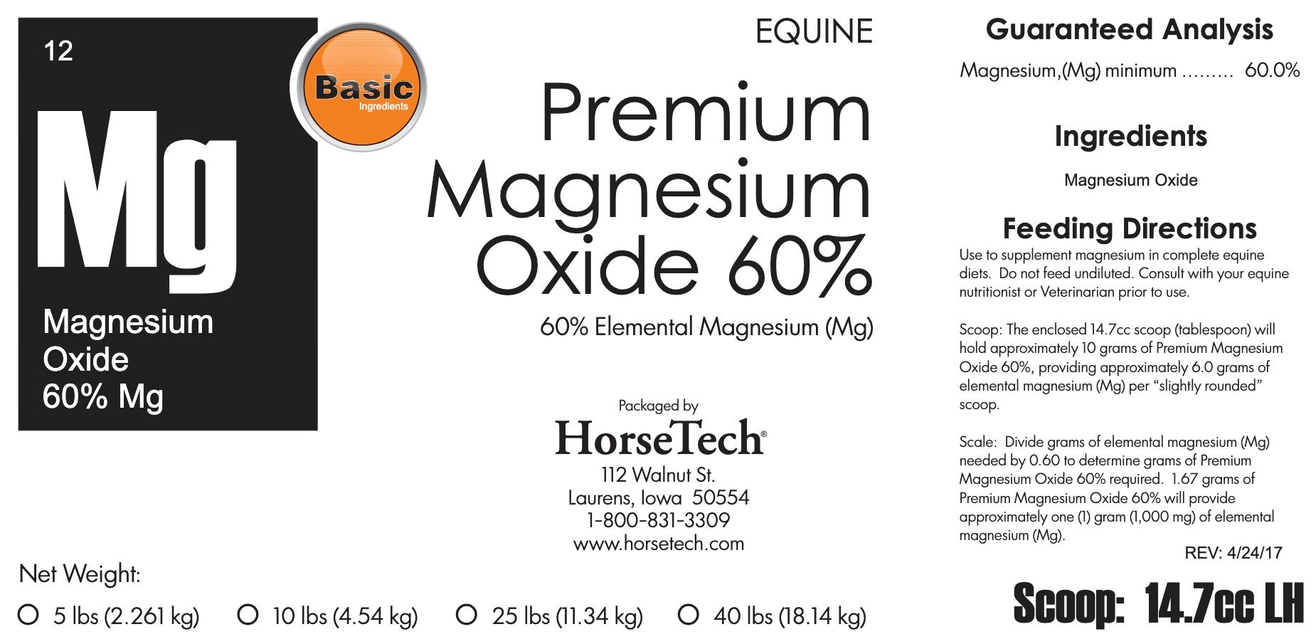 Scale: Divide grams of elemental magnesium (Mg) needed by 0.60 to determine grams of Premium Magnesium Oxide 60% required. 1.67 grams of Premium Magnesium Oxide 60% will provide approximately one (1) gram (1,000 mg) of elemental magnesium (Mg).